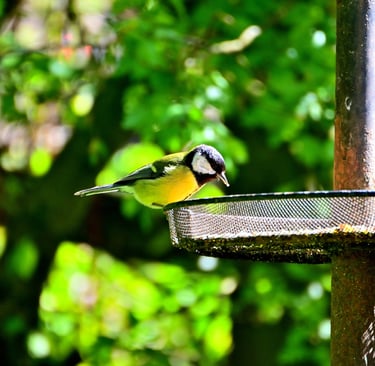 There is plenty of cover for the birds to sit and make their move, which is exactly what they do. If you sit still on a bench with a zoom lens on a sunny day, you’ll catch all manner of birds. This specific shot is a Great Tit. You have to be quick; they don’t hang around. It’s a matter of get in, check for danger, get some scran, and leave. It’s a great show and never boring, though if you blink, you’ll end up with a picture of a bird’s back. I’ve noticed animals have a sixth sense for turning around the moment I think about changing my lens.
