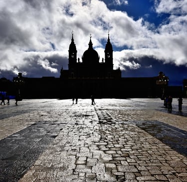We’d just spent time inside the cathedral itself before wandering through the Royal Palace of Madrid, and as we stepped back outside the rain finally eased. Almost on cue, the sun broke through the cloud cover. Looking at the scene through the viewfinder, it immediately felt like a moment that called for drama rather than detail. Turning the cathedral into a silhouette allowed the storm clouds to take centre stage, heavy and textured, adding mood and tension to the image.