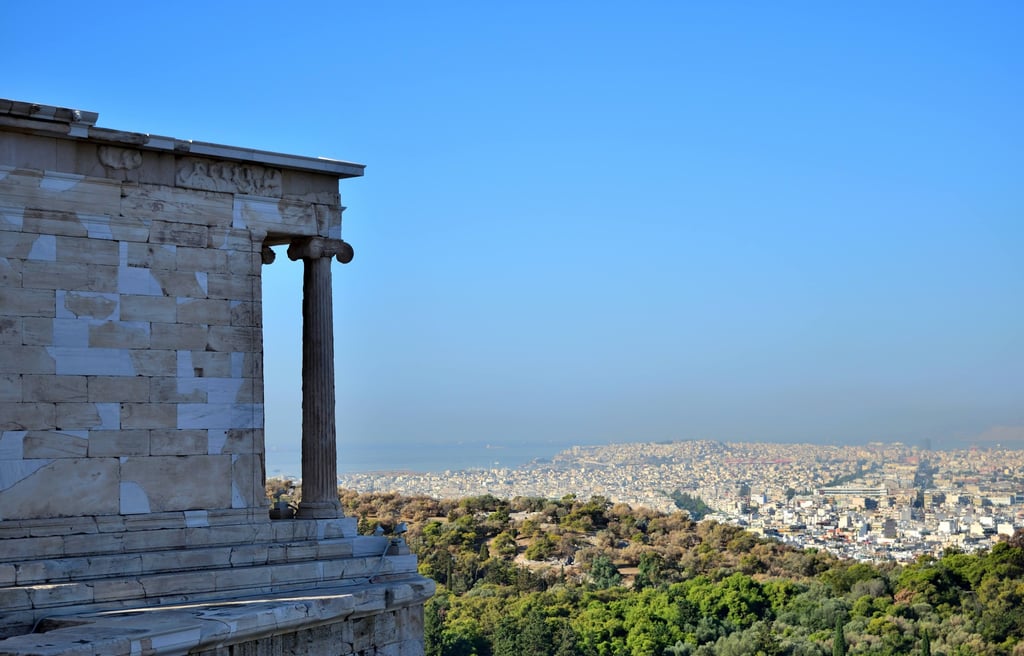 When you are in Athens, it seems quite hilly, but then again our accommodation was not that far from the Acropolis, but when you look out when you're high enough, it seems to sprawl out as flat as a pancake. I have a picture of the opposite side where again there's just a sea of low rise properties, except for one peak in the distance. And that's the other thing. There are no huge towers dominating, and there's a reason for that... you can't build them. Most places are restricted to 3-4 floors. It does make the whole place look a little odd, and the image here does give some impression as to how high you are from the ground level at the Acropolis, though I'm not 100% sure it really does it justice. Though I did have to get this in a rush, the guides were forcing people to exit the Acropolis once they were done, not standing about taking pictures now, that would not do.